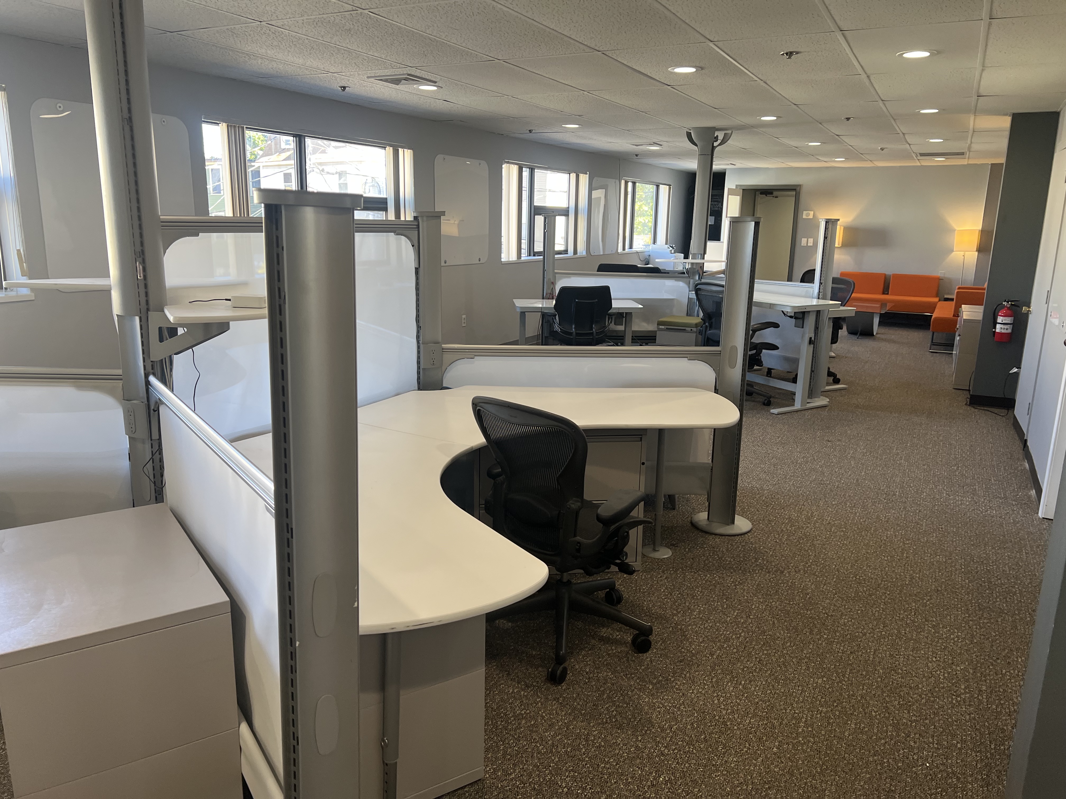 Work from a semi-private space in the collaboration hub.
